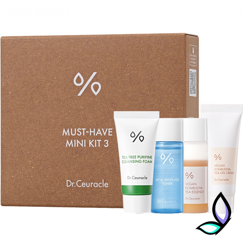 Dr.Ceuracle Must-Have Mini Kit 3 — дорожній набір з 4 мініатюр для комплексного догляду: очищення, тонізація, зволоження та відновлення. Містить засоби з чайним деревом і комбучею, підходить для жирної та комбінованої шкіри.